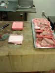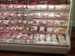 I said a week ago I would take and post a pic of the antique block I cut on every day. Well here are two pics. also took one of my small meat case. This is a small market. Its 8 feet long with 4 decks.. we do the best we can with what we have to work with in this small market. But we are proud of it and the customers don't seem to mind and hell its alot easy to clean this case than most. I have to admit this job is the easiest i have had yet. I am used to working with 60 foot or longer cases. but this job pays just as good as those and I get full time hours because I am pretty much the only cutter and i do my own wrapping. best job i ever had.